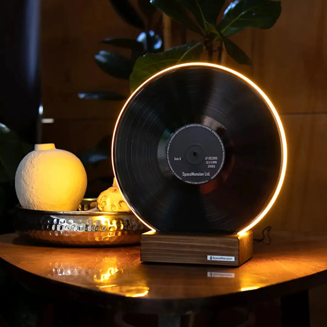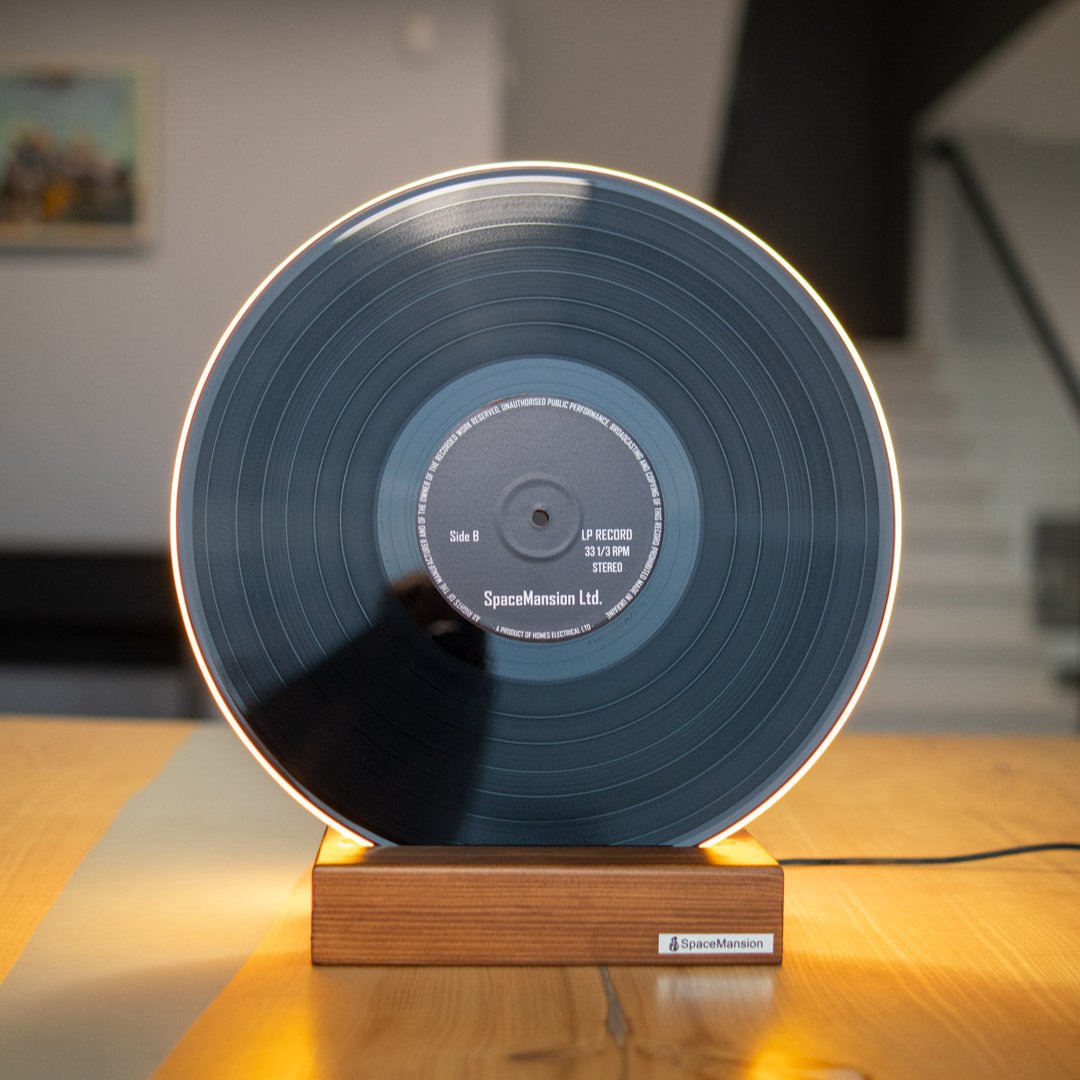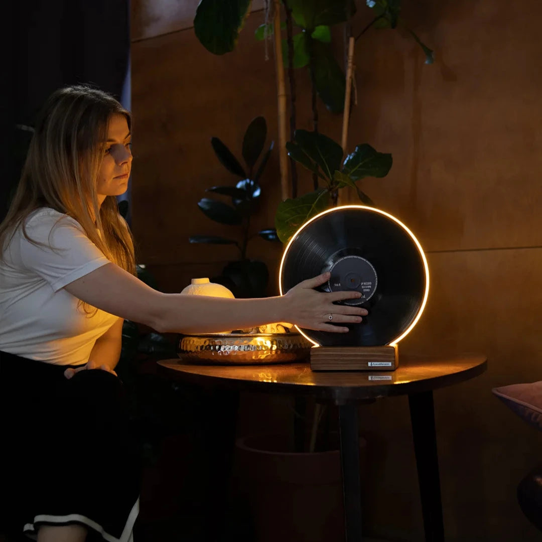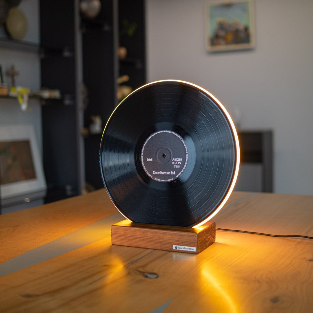 Inspired by music Vinyl lamp on a wood base and power supply (EU/US/UK).